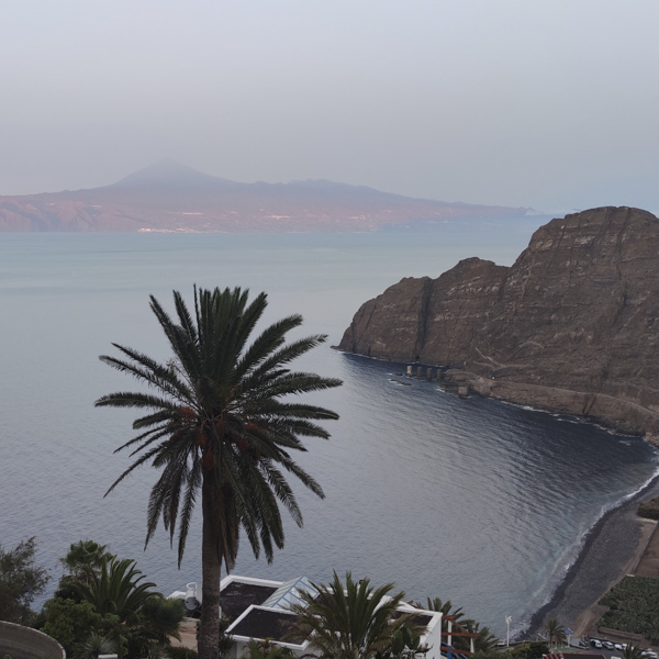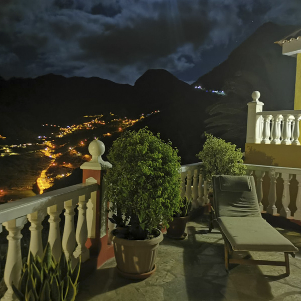 La villa está en una tranquila ladera a las afueras de Hermigua, con unas vistas preciosas sobre la isla de La Gomera.