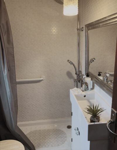 Sala de estar con un gran sofá cama extensible para 2 personas. También cuenta con un smart TV y Wi-Fi de alta velocidad y conexión a Internet.