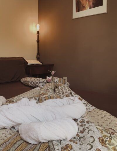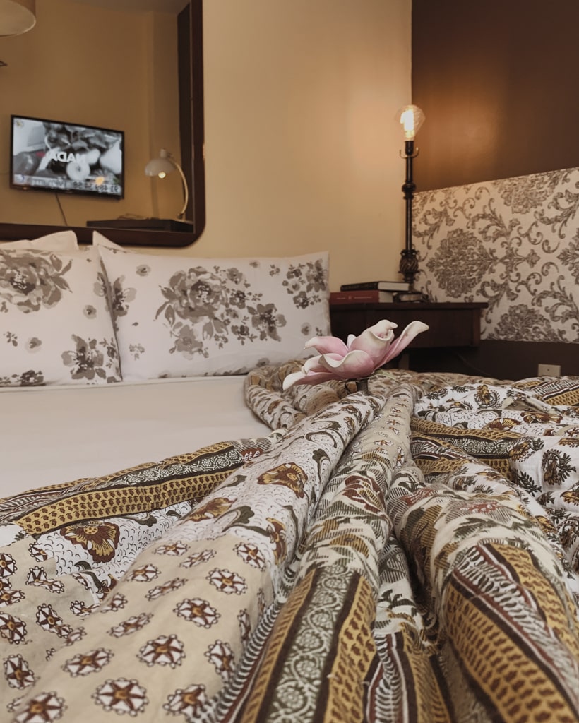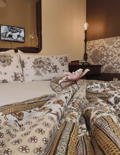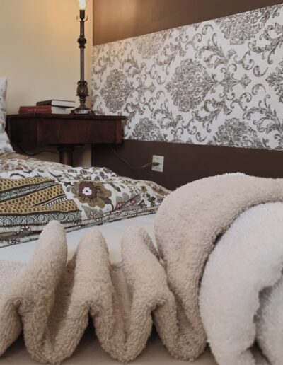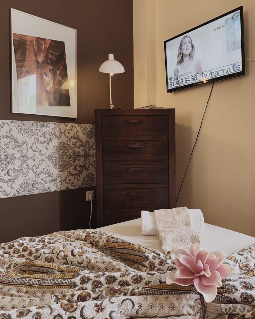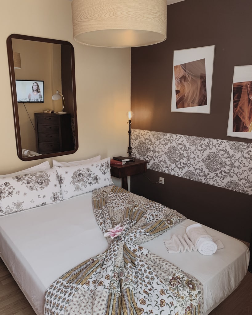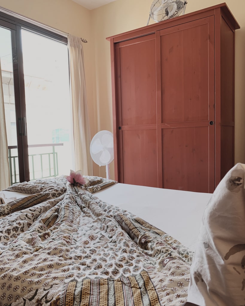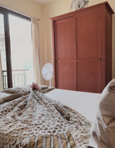 La habitación ofrece la comodidad de una cama doble, un gran armario y una práctica cajonera. Cuenta con un balcón para respirar un poco de aire fresco, y por qué no un café por la mañana.
