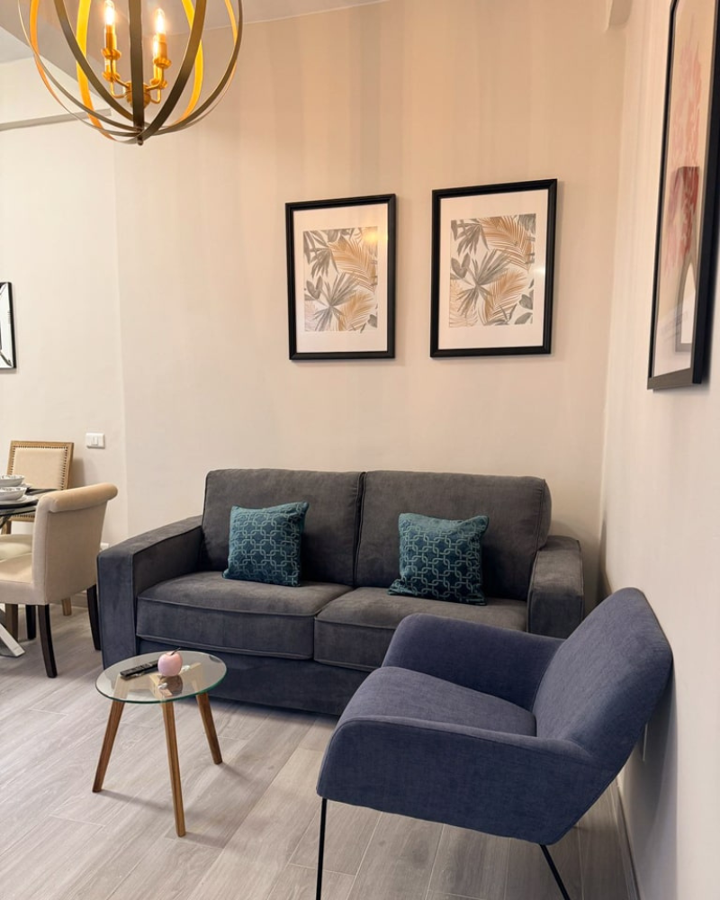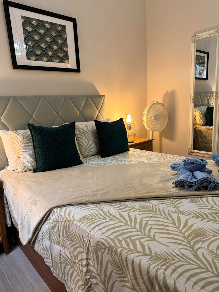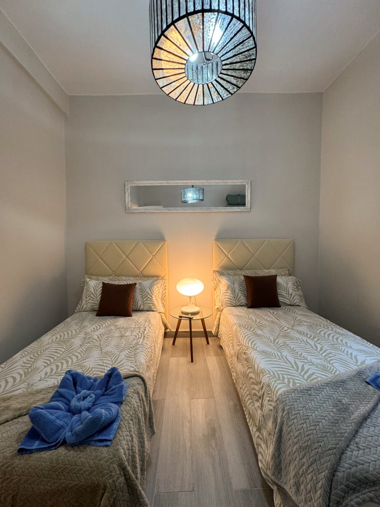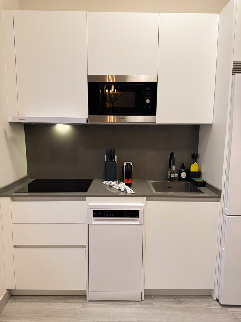 Este apartamento consta de 2 dormitorios, una sala de estar, una cocina totalmente equipada con nevera y cafetera, y 1 baño con ducha y artículos de aseo gratuitos. Hay toallas y ropa de cama en el apartamento.